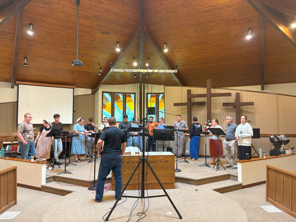 We left the flat farmland of Arthur, Illinois, after a leisurely late call time of 9:15 and headed southwest. The bus filled with laughter and chatter as lively games and conversations ensued. We arrived at Fairview Mennonite Church in the rolling hills of Kalona, Iowa, shortly after 4:00 and scoped out the acoustics of the… Continue reading Tour 2025 | Day 4