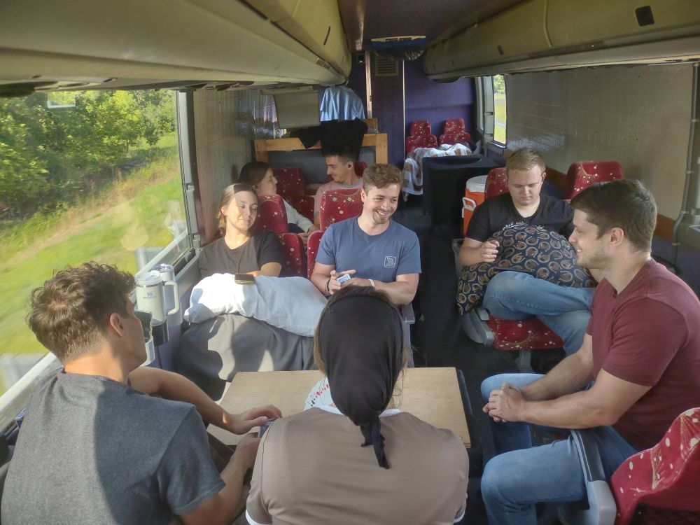 Yawn! Saturday morning arrived plenty early. Restoring the bus back to human use until Very Late the night before made for some groggy ensemble members as we gathered for Recording Day. We have been blessed over the past several years by First Baptist Church as a recording venue, and Kendrick Layman (a former Tehillah member)… Continue reading Tour 2025 | Day 9
