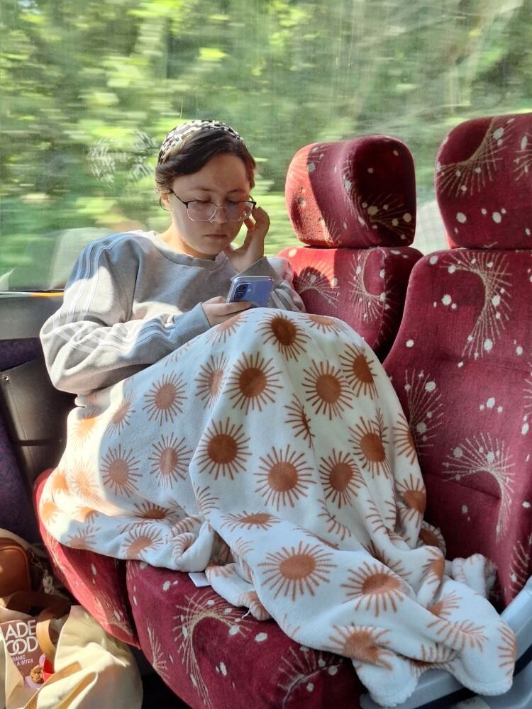 We then got into the bus and finished the drive to Hutch. Chess, Spot-It, and Qwixx were favorites during the bus time. Once we arrived at Hutch, we were greeted by a scrumptious supper of haystacks, provided by people from Word of Life Mennonite Church. After supper, we went to Hans and Beth Mast’s house for affogatos, which were amazing! A new song was practiced there (in preparation for our workshop tomorrow), and many barber shop tags were sung, some nice and some not. We then headed off to our hosts’ houses to rest for another coming day!