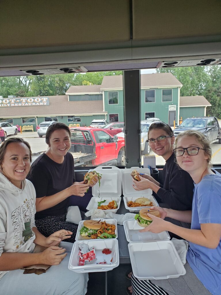 We began the drive with Aaron giving a devotional on dealing with loss and how we find hope through Jesus Christ, even in the midst of pain and suffering. For lunch, we stopped at the Toot Toot Family Restaurant in Missouri, where some people ate burgers that they couldn’t fit in their mouths (a quite remarkable feat, seeing as these people can produce so much noise).