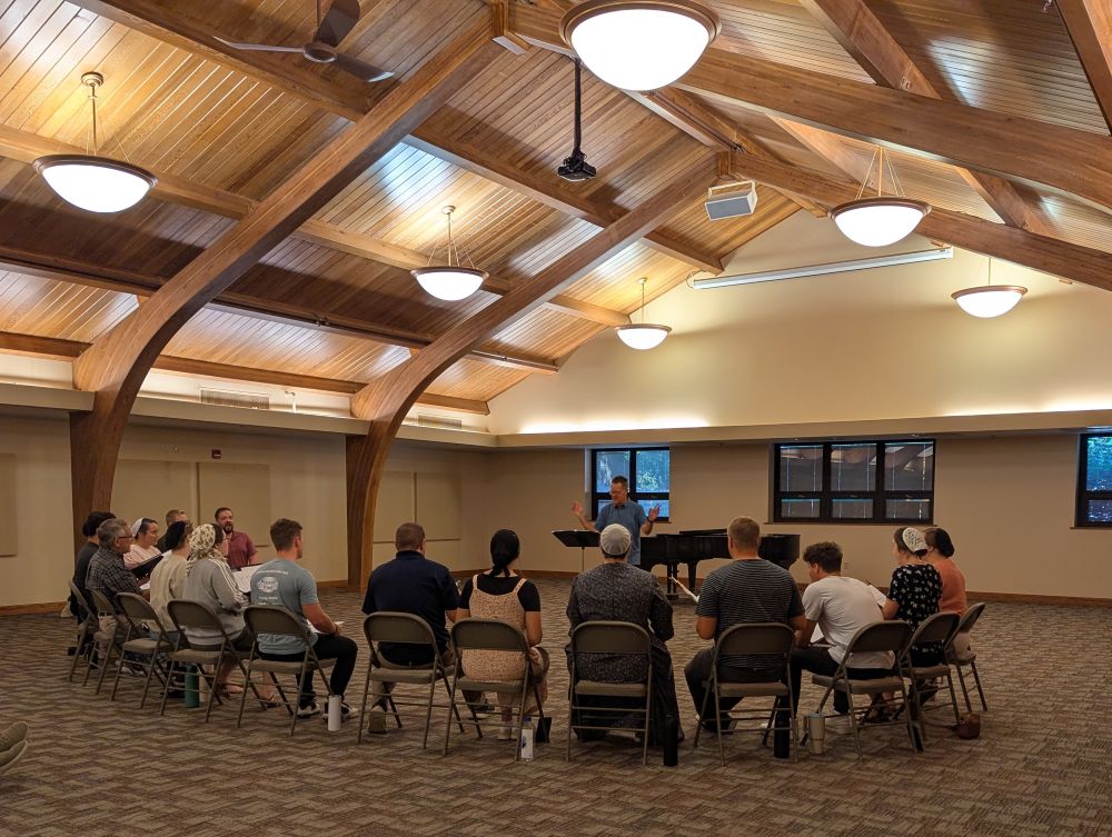 Wednesday morning found us on the bus heading to Hesston College. We were graciously welcomed by Greg Bontrager, who led our workshop for an hour. The Bel Canto Singers joined us for the rest of the morning, and we enjoyed hearing some of their pieces, singing some of ours, and working on a new piece together!