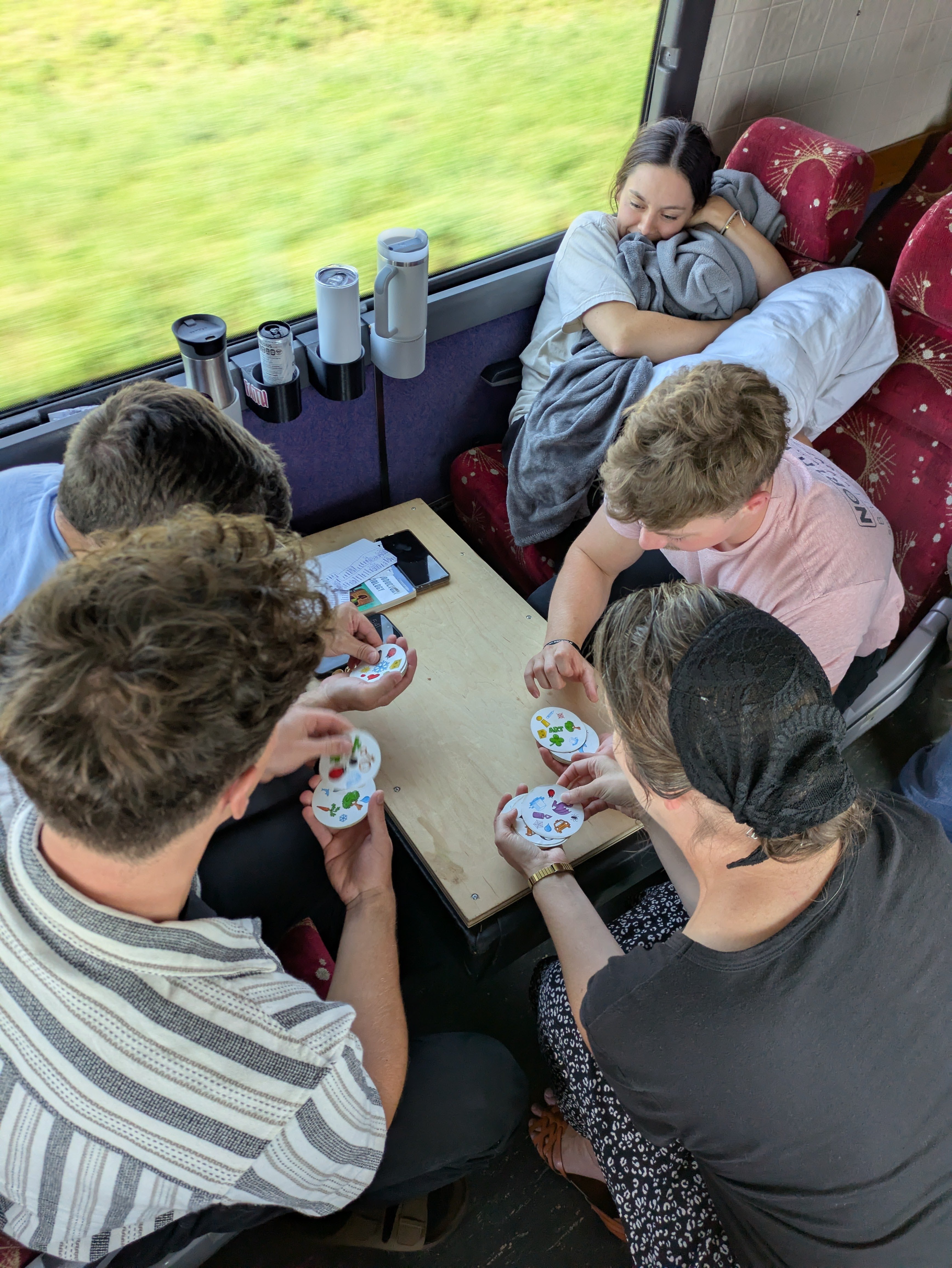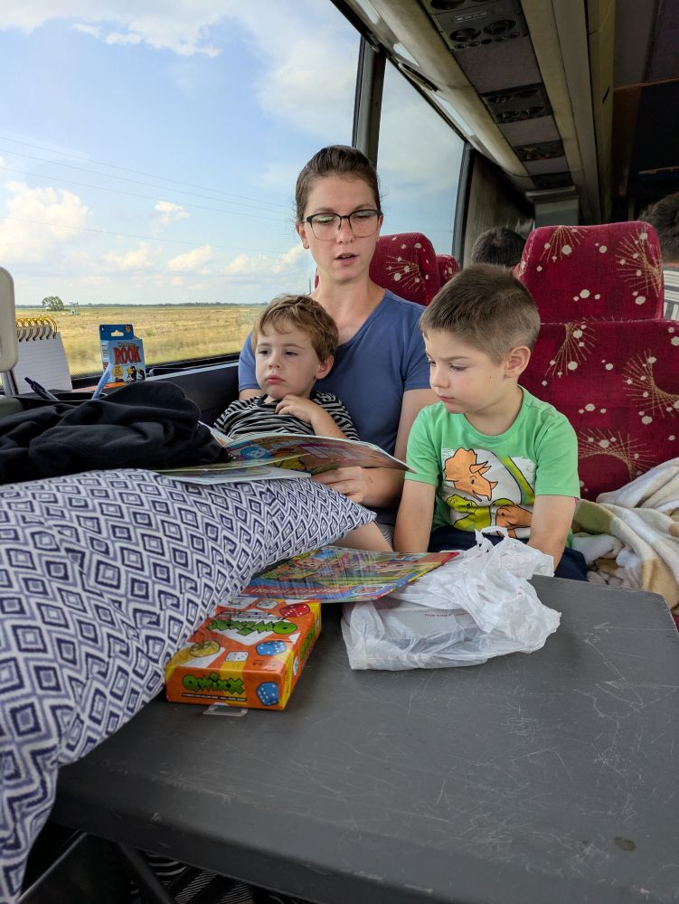 By mid-morning, the laughter from stories, games, and children’s songs filled the bus. There were also eruptions of “No way!” and moans of despair when some players found themselves in dire straits. We also learned that our tour director has a “very deep speaking voice for a tenor.”